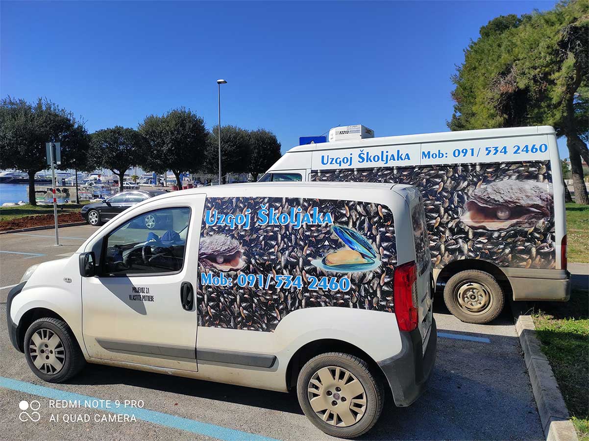 U svrhu podizanja kvalitete uvjeta prijevoza školjkaša te osiguranja maksimalno kontroliranih uvjeta prijevoza u sanitarno zadovoljavajućim uvjetima, nabavljena su 3 adekvatna specijalizirana vozila s rashladnim komorama, primjerena potrebama prijevoza školjaka iz uzgoja na lokaciji Savudrijska vala do kupca.